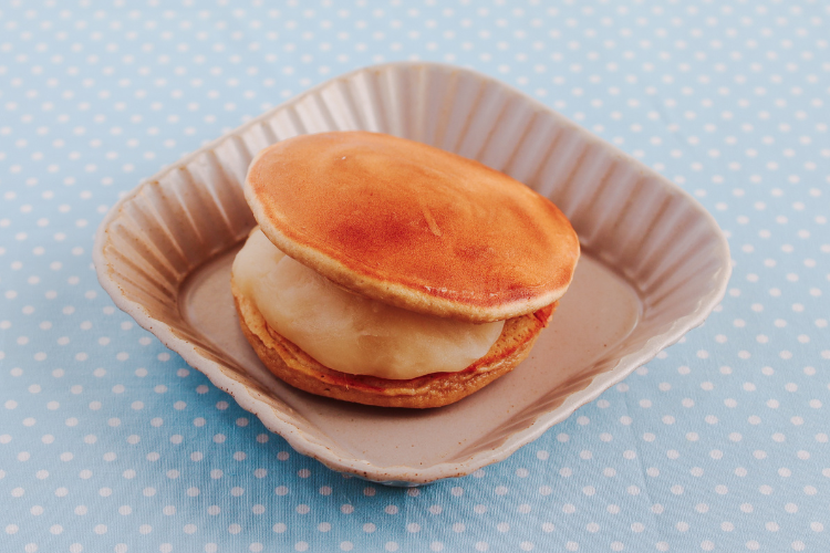 (2)に白あんを挟み、どら焼きを仕上げます。